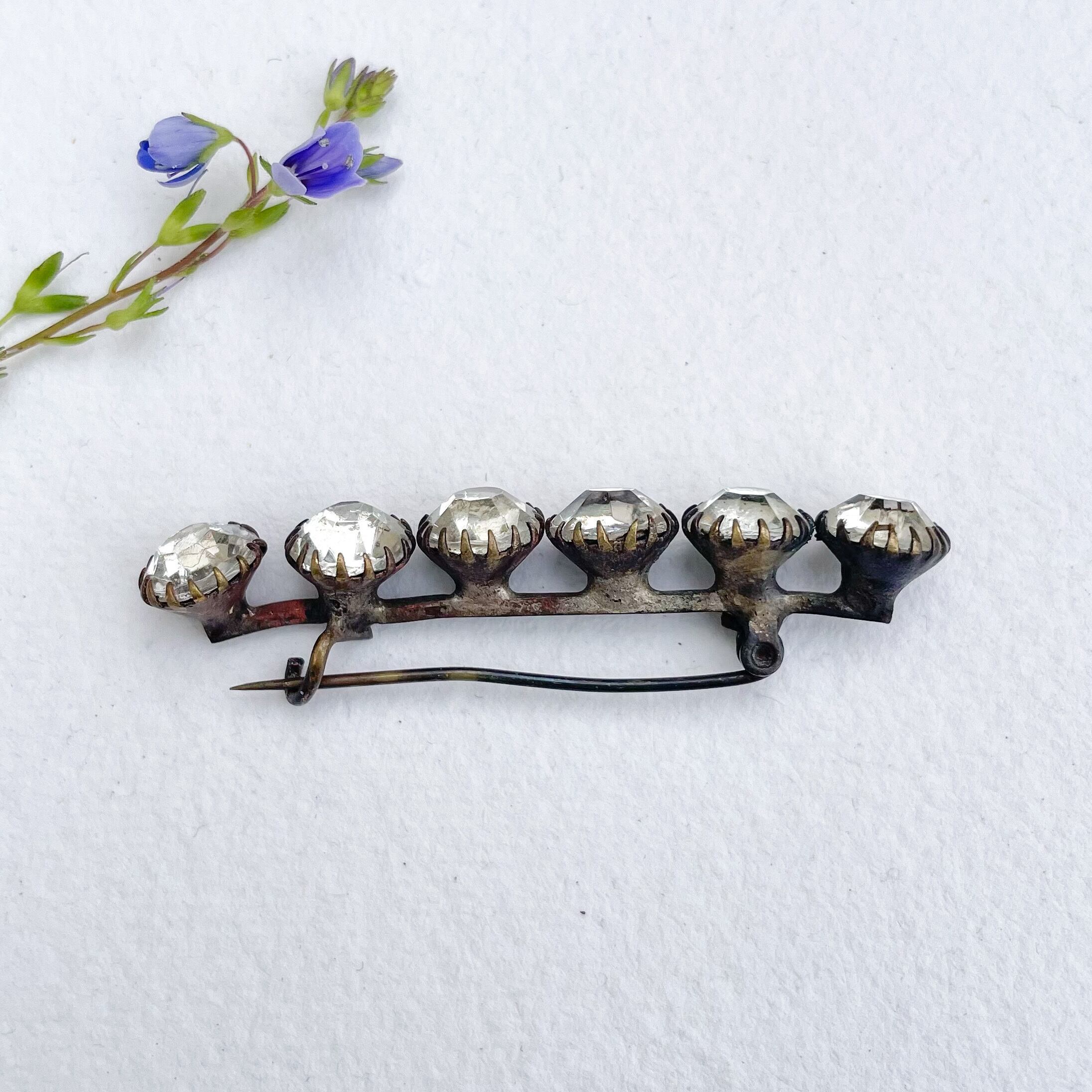 美しい輝きを放つカットグラスが並んだバーブローチ。
