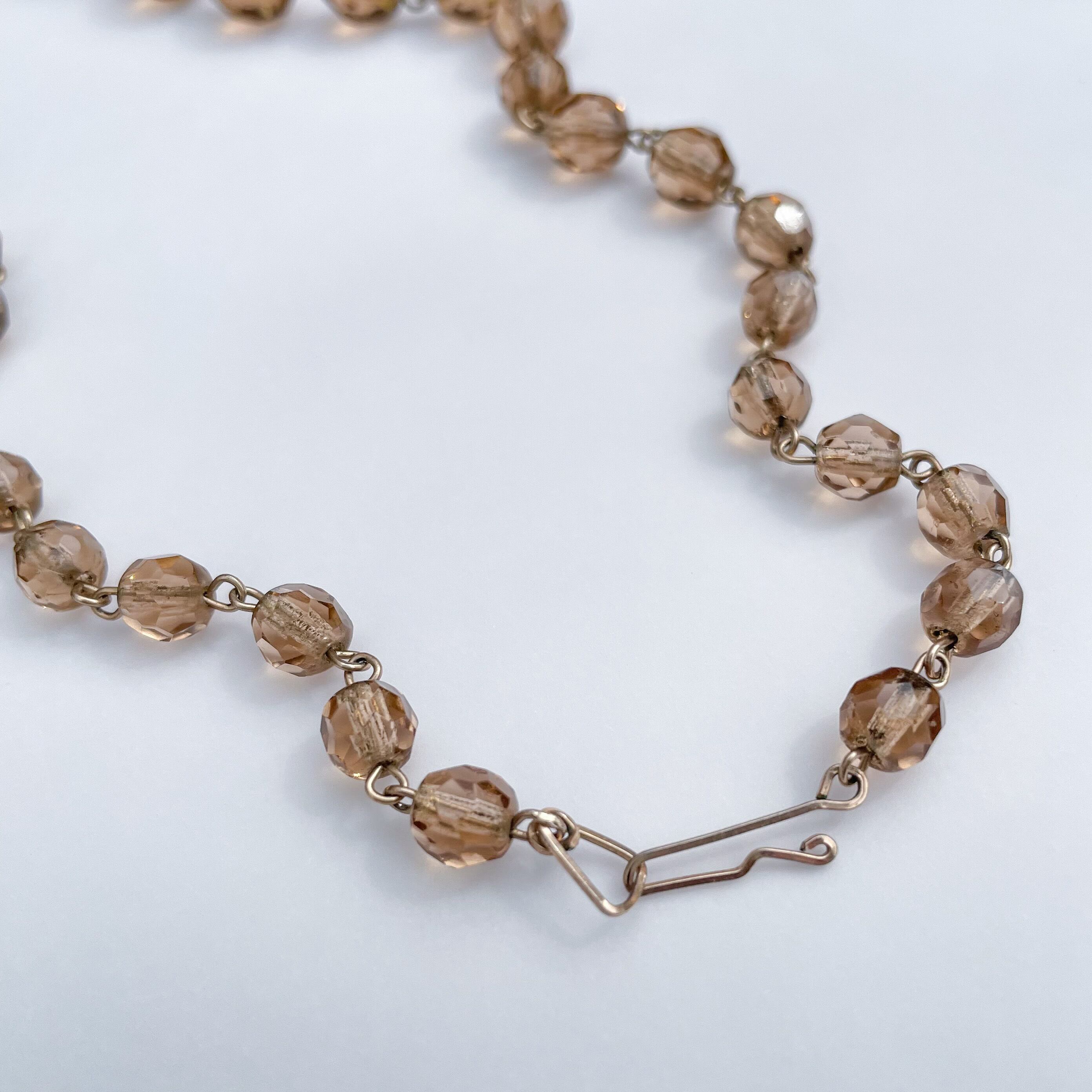 スモーキーなブラウンカラーのガラスビーズネックレスです。