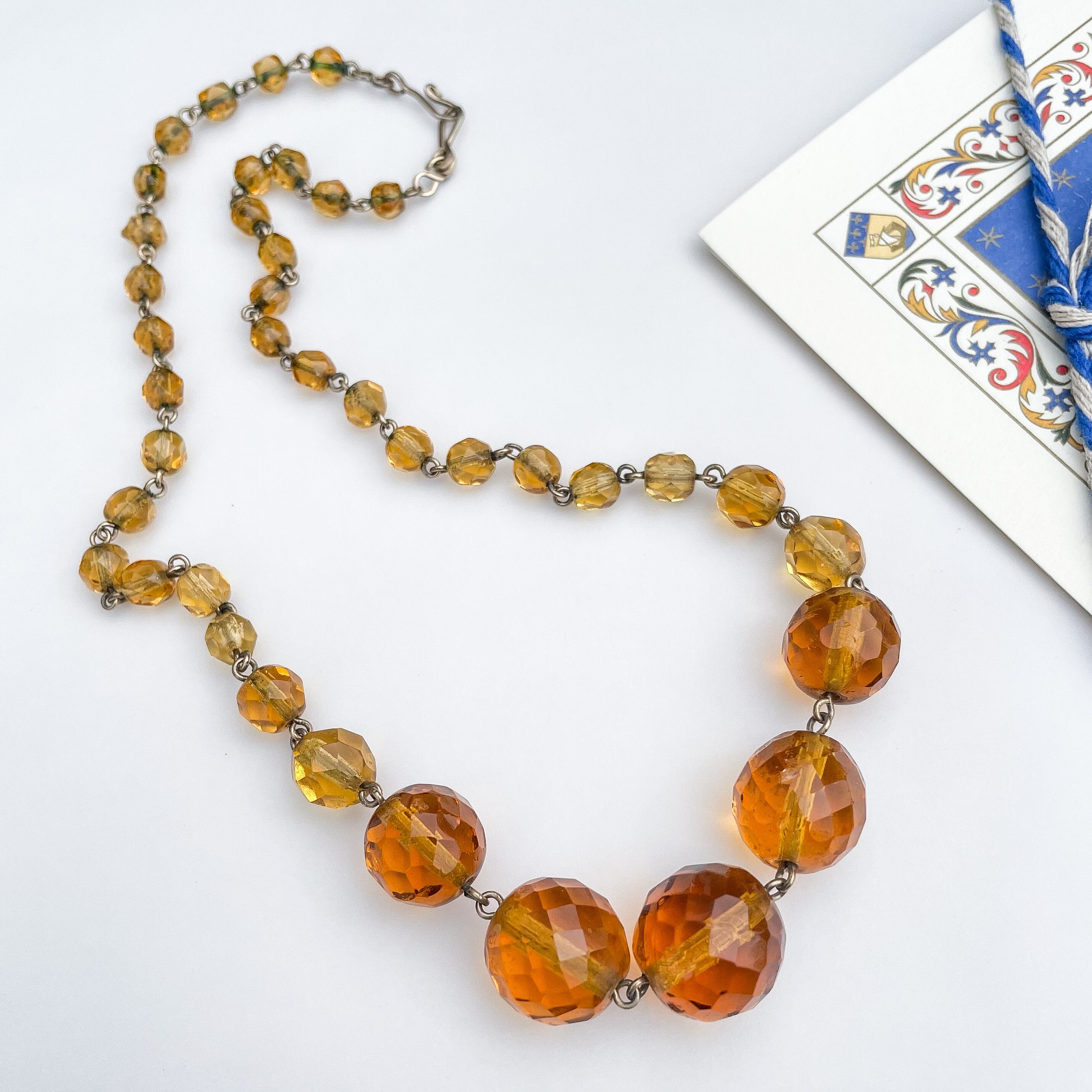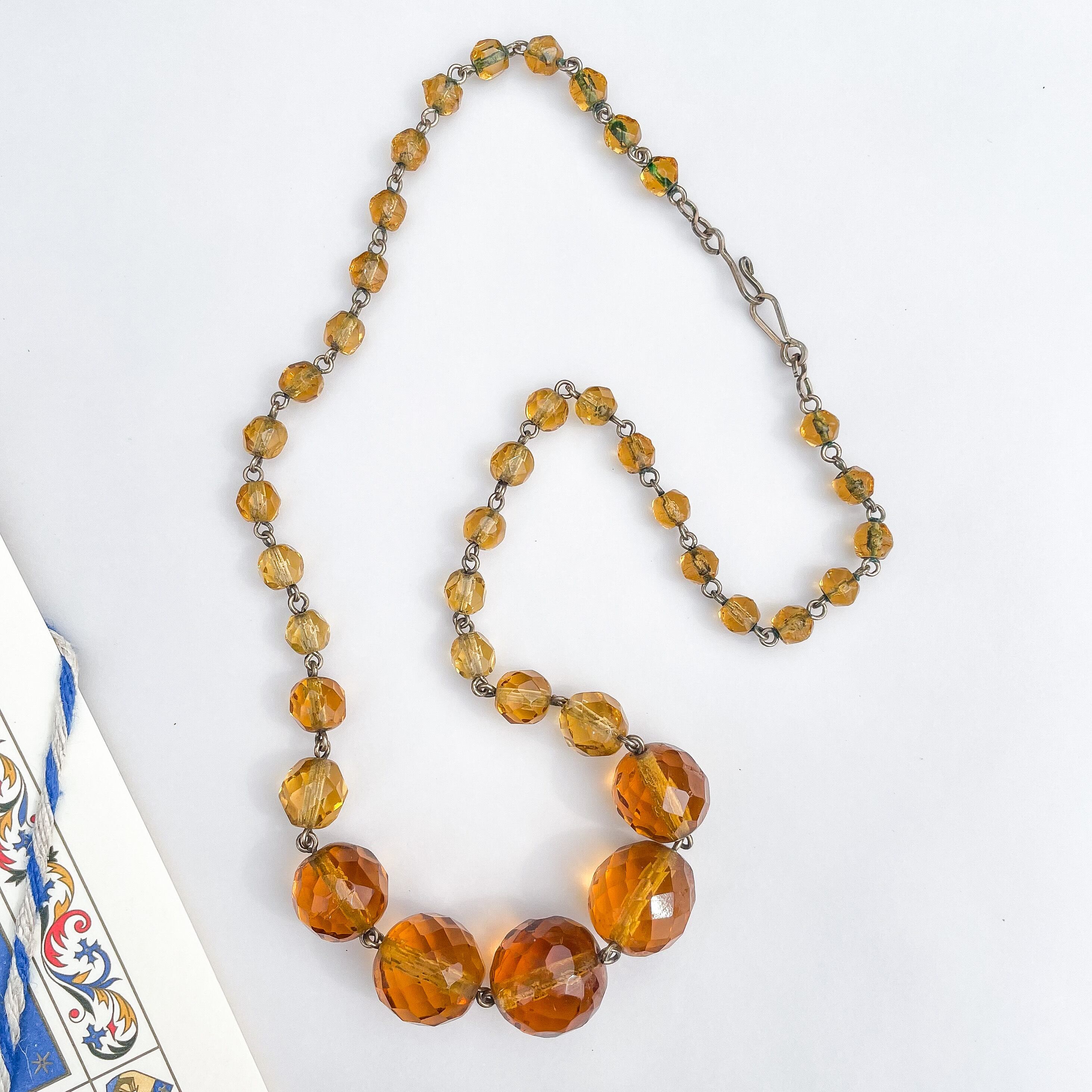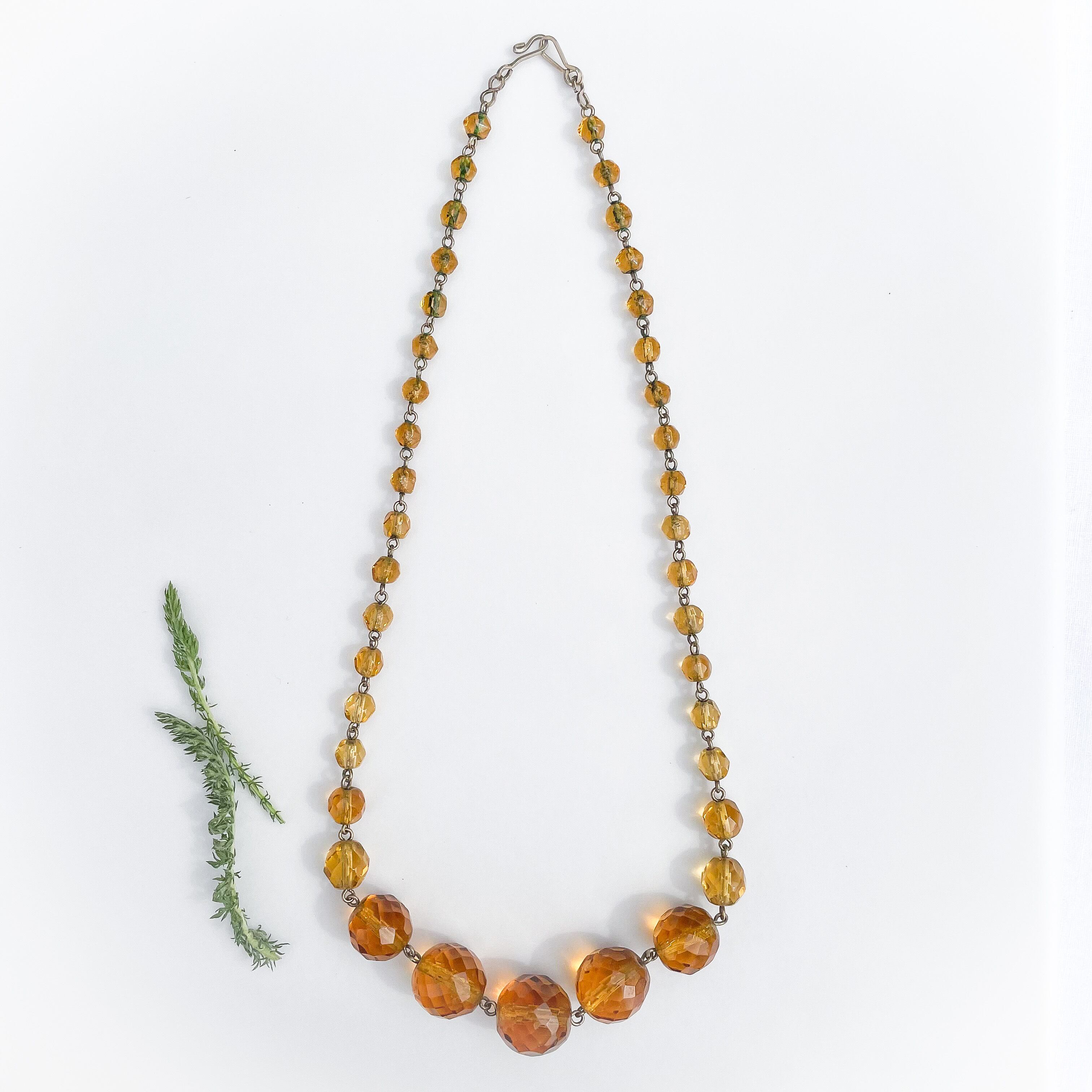 1920-30年代 ガラスビーズ ネックレス アンバー