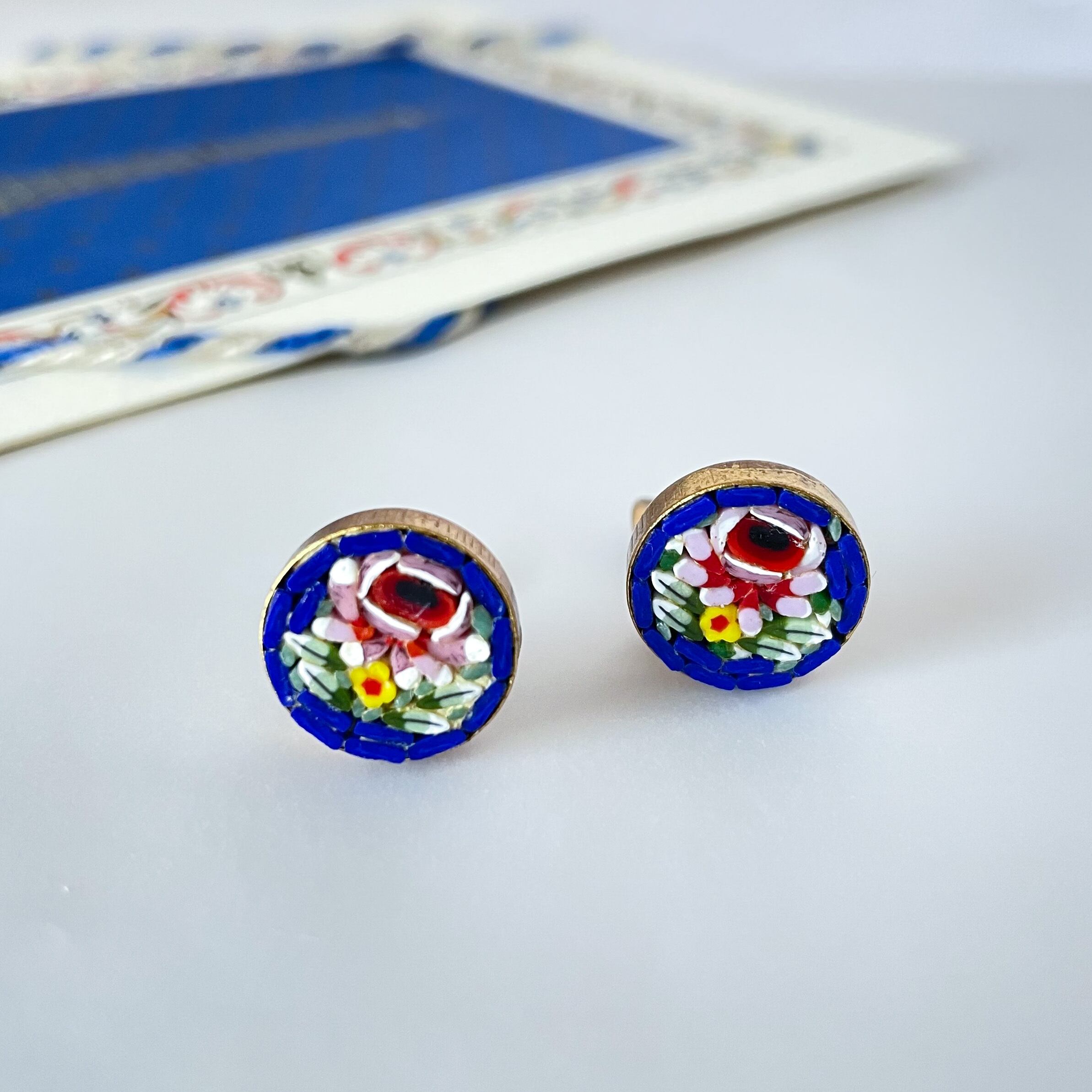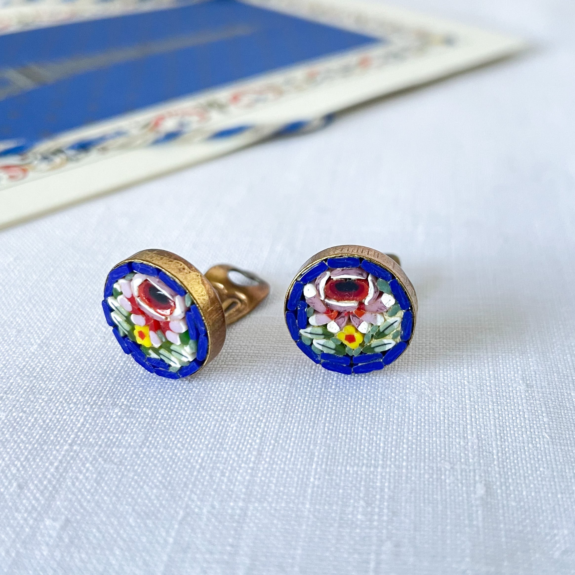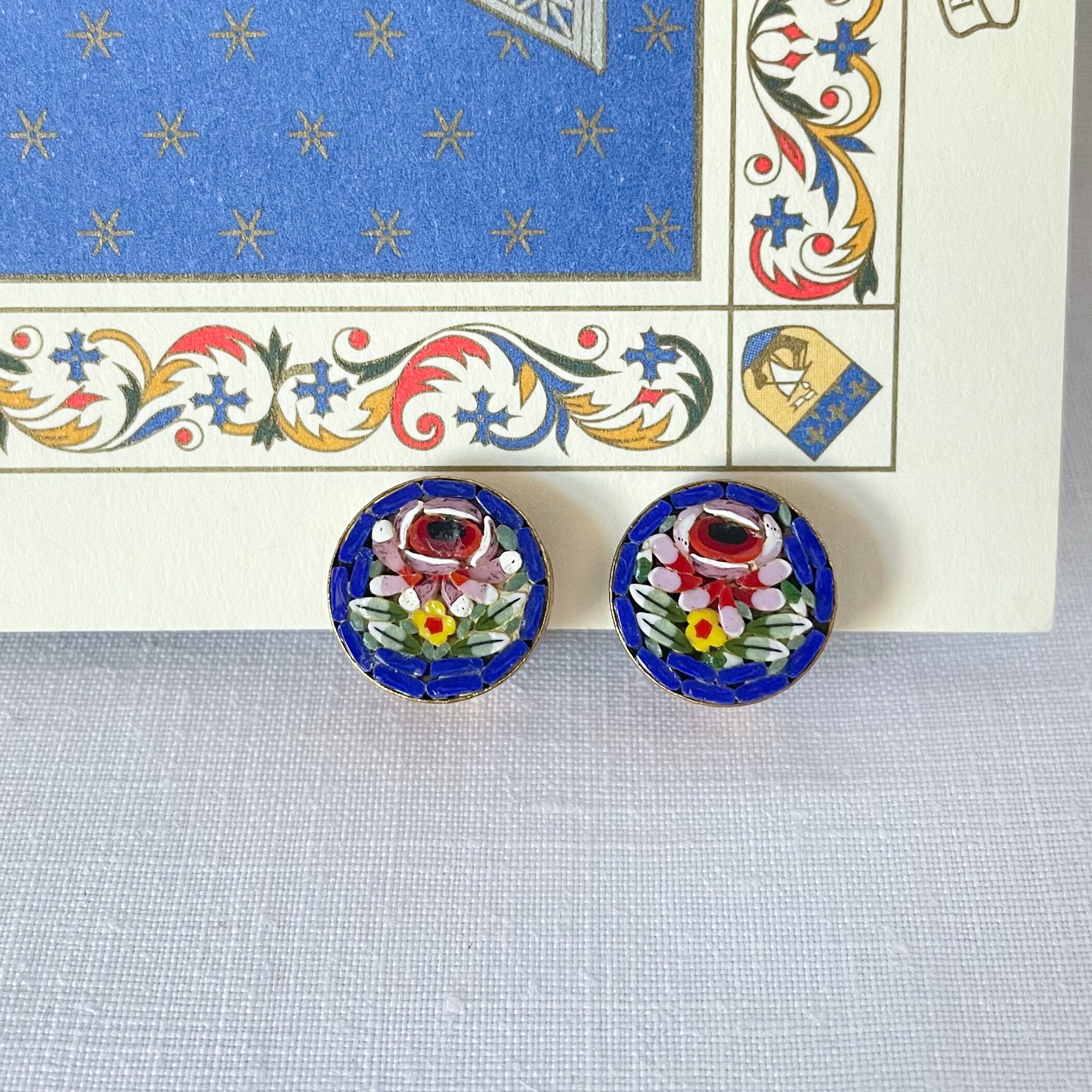 美しいコバルトブルーのマイクロモザイク イヤリング