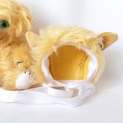 刺繍された爪と鼻と口、プラスチック製の目、耳にはチーキー特有の鈴が入っています。