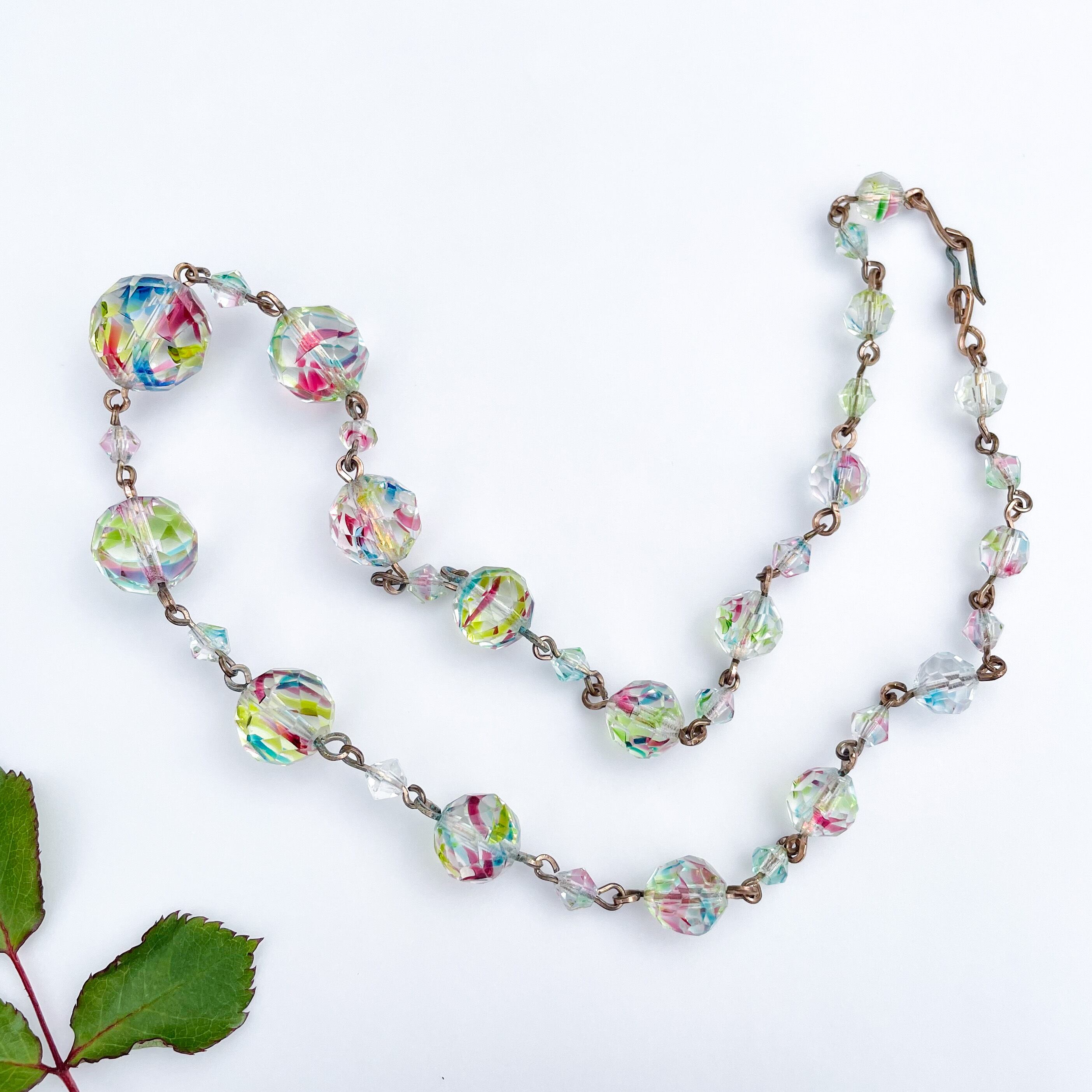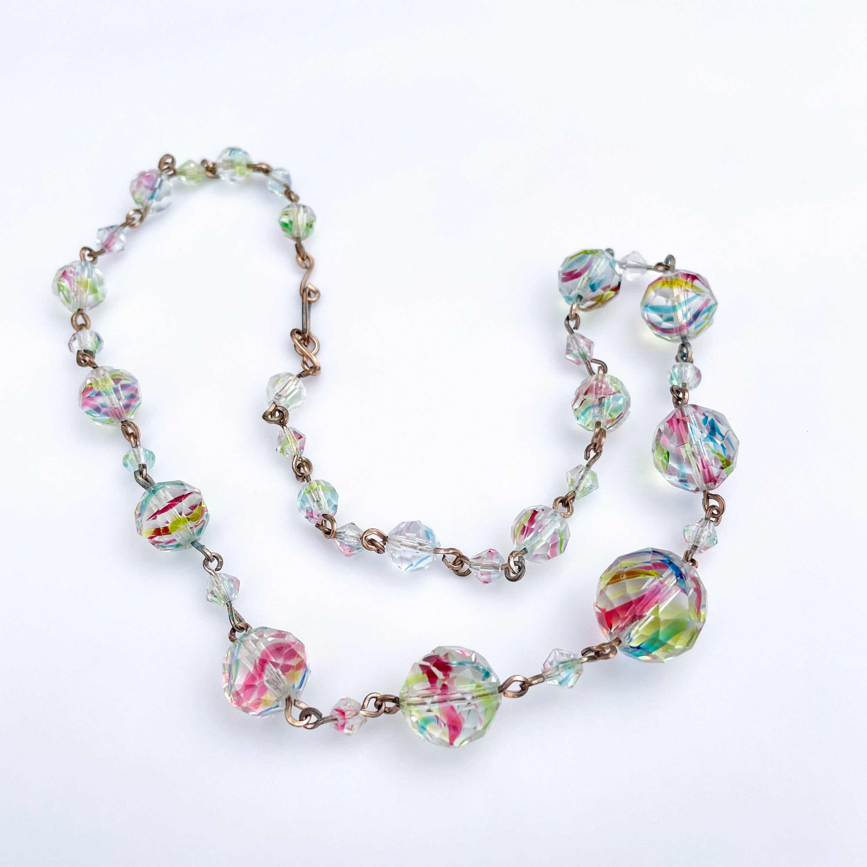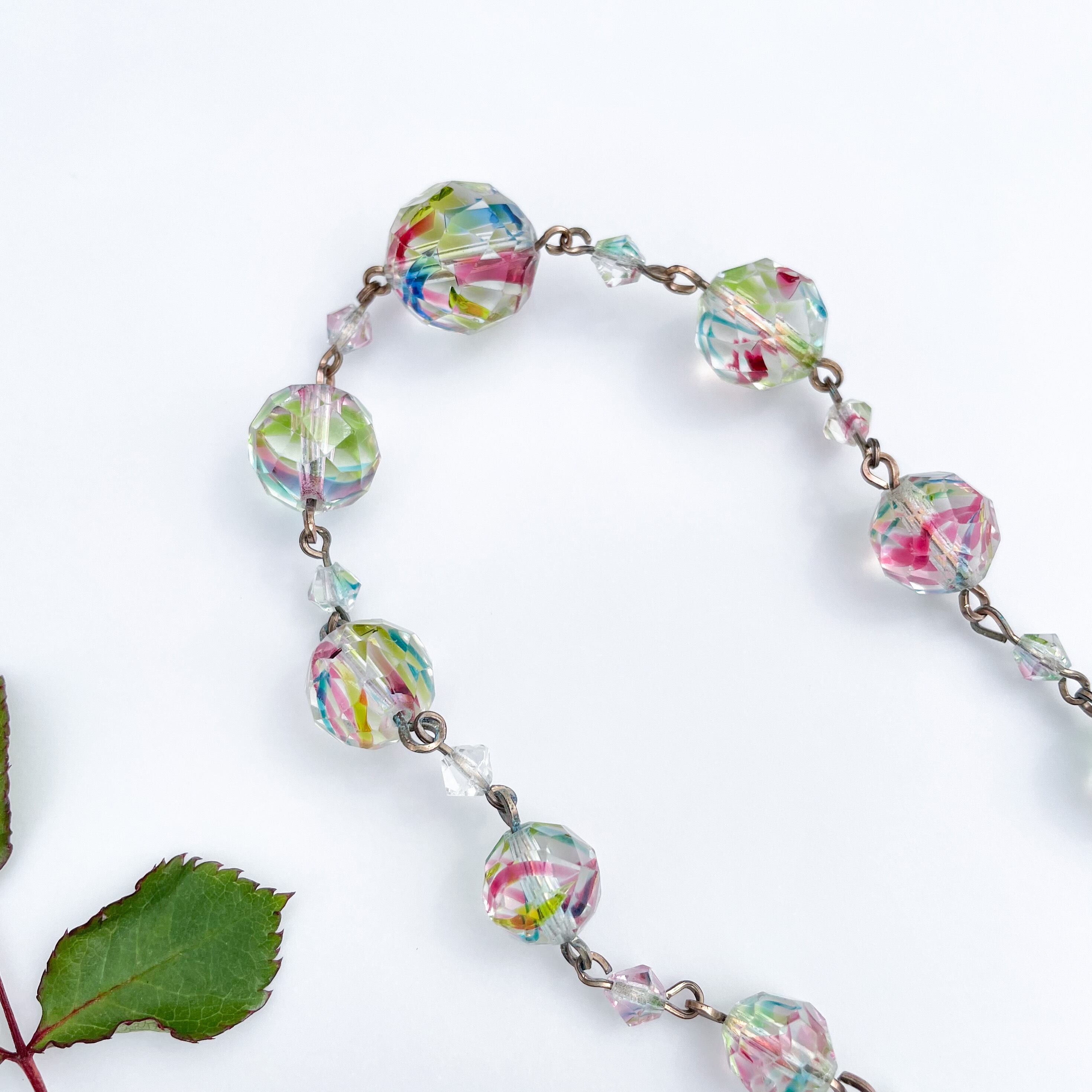 スプリングカラーのアイリスガラス ガラスビーズネックレス