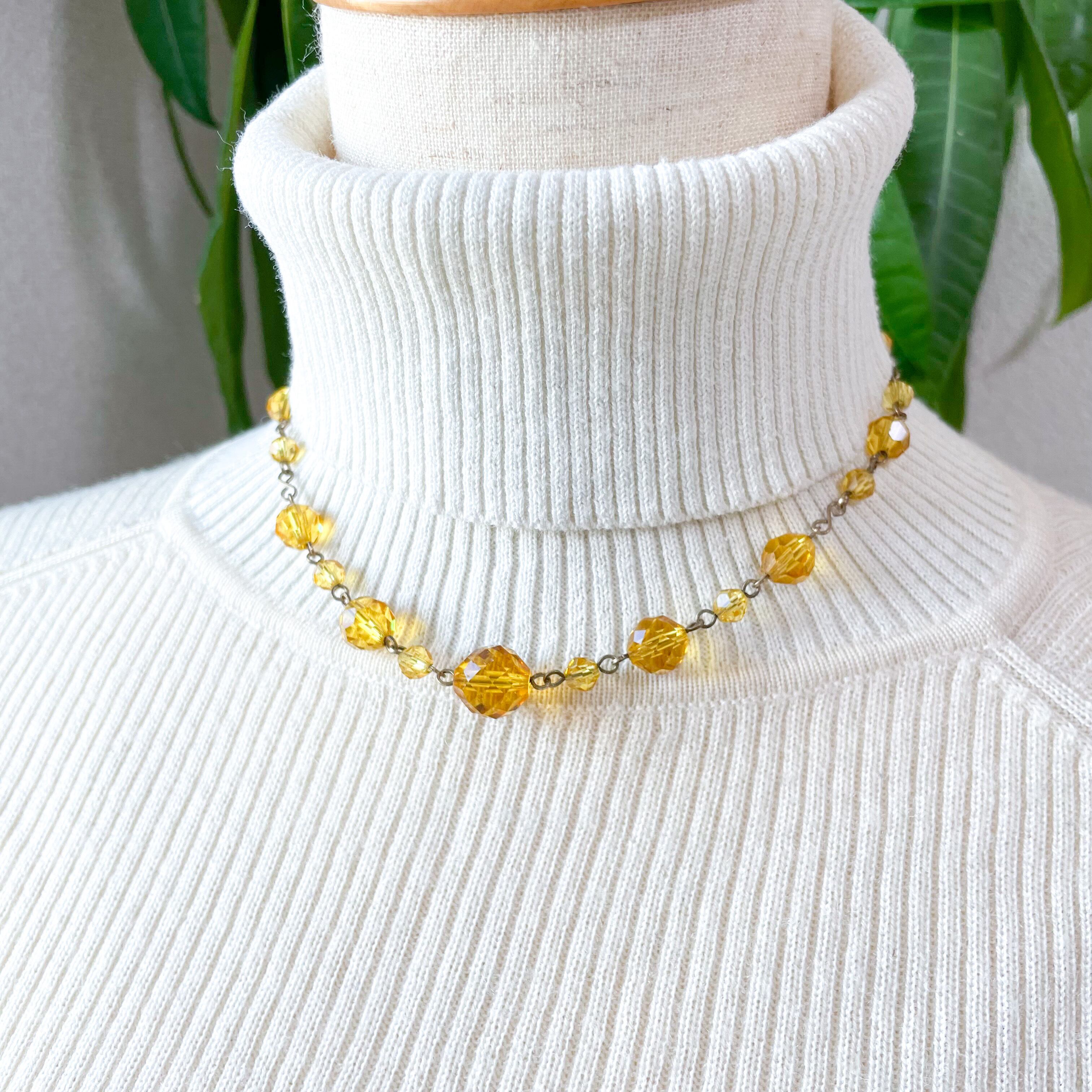 ハニーレモンのような明るい色合いのガラスビーズネックレス。