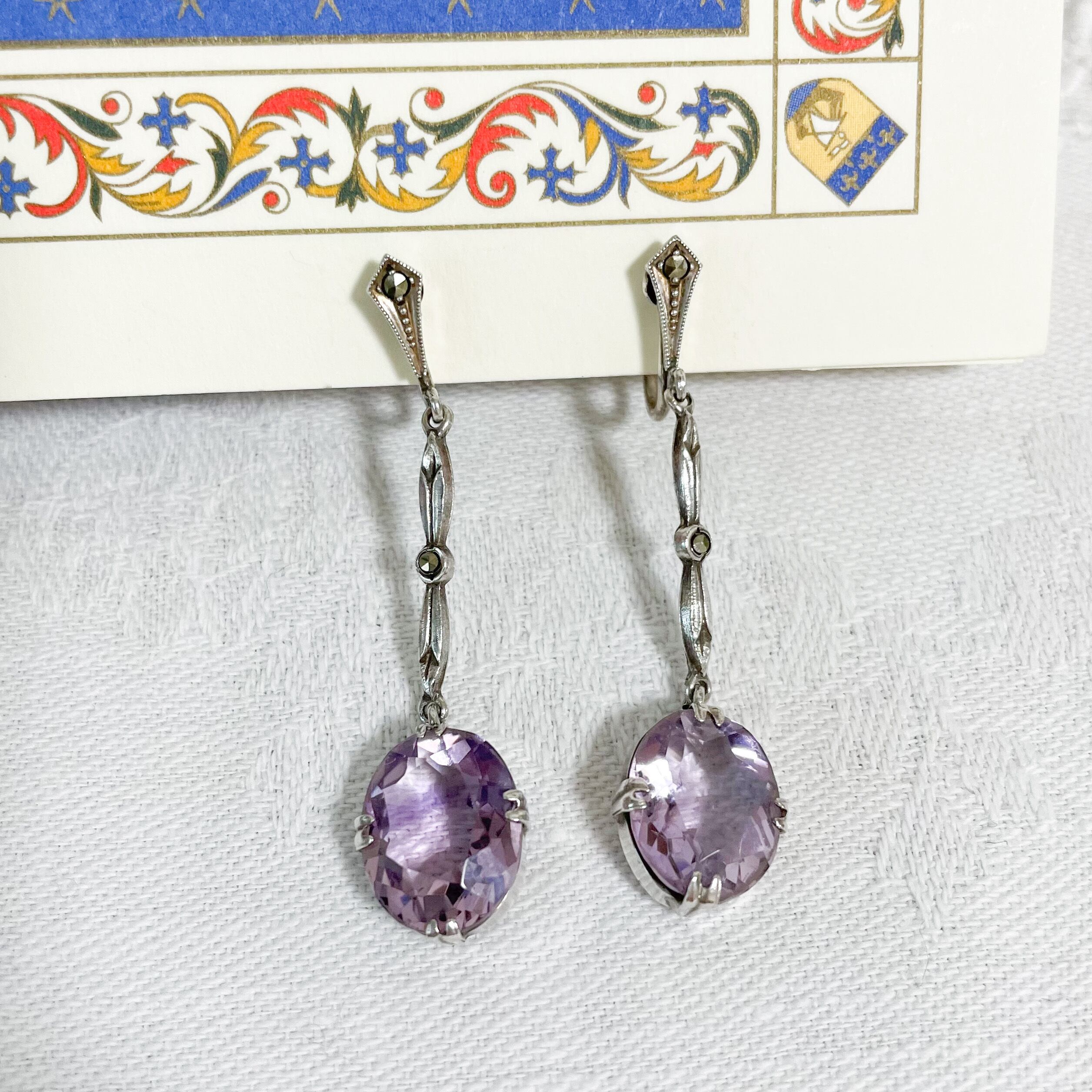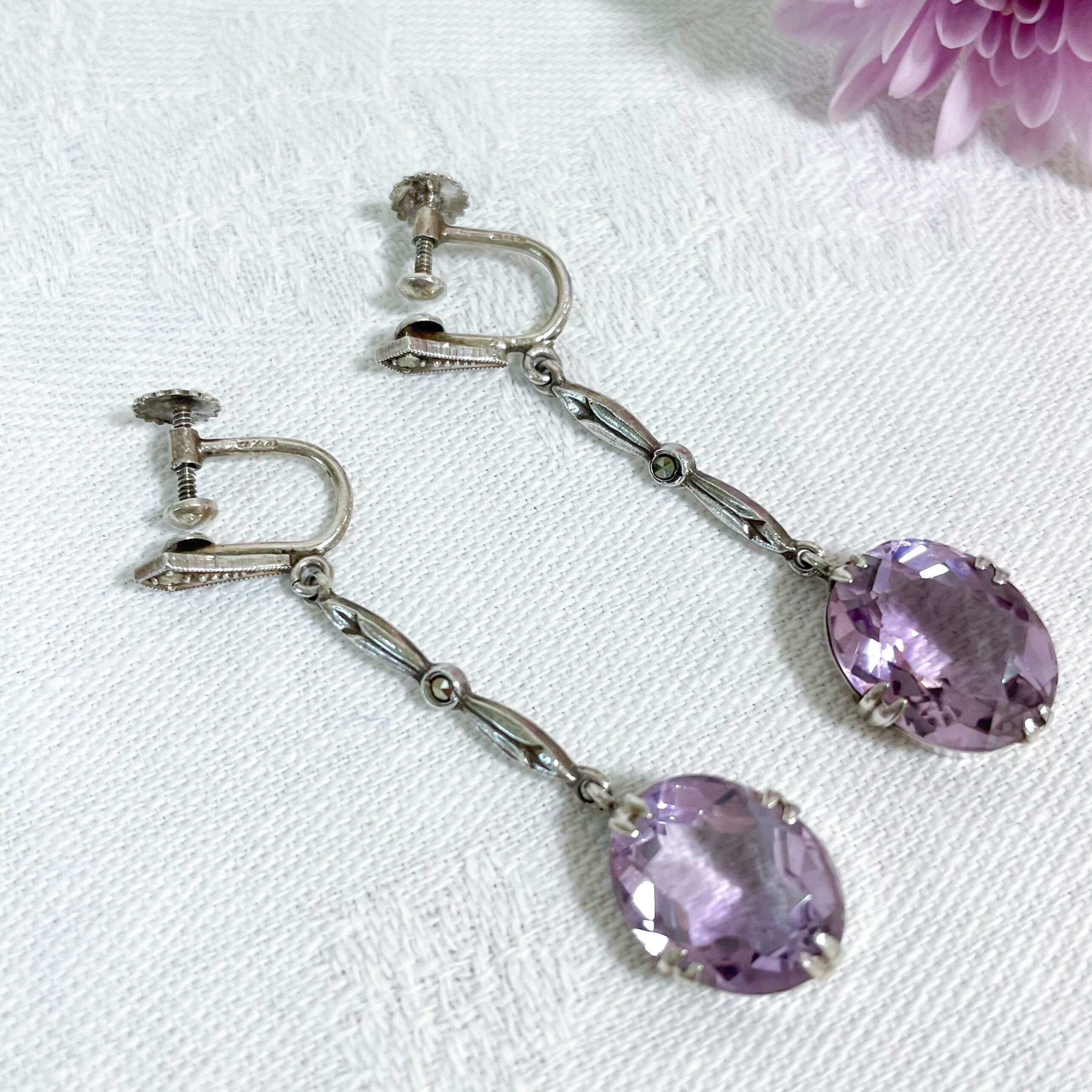 優しいスミレ色のアメシストアンティークイヤリングが入荷しました。