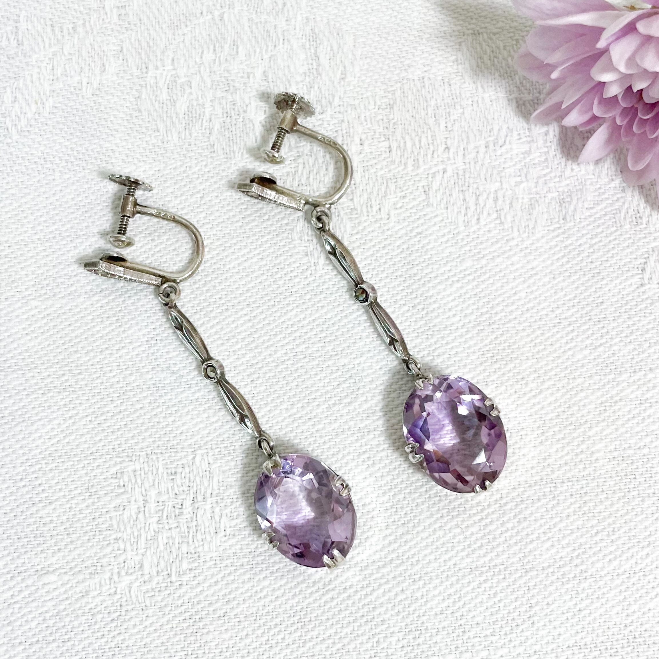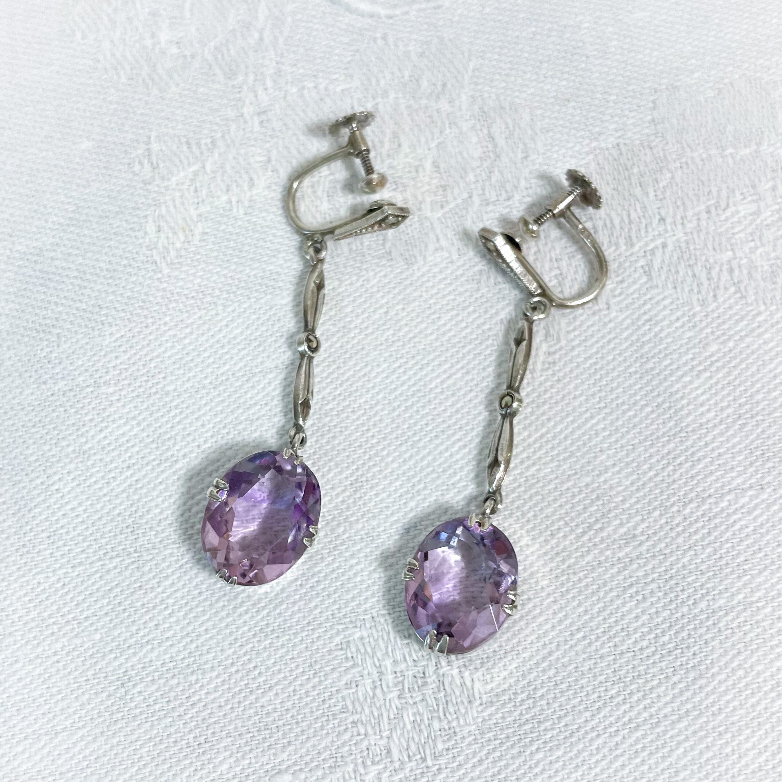 スミレ色のアメシストイヤリング 2月の誕生石 アンティーク