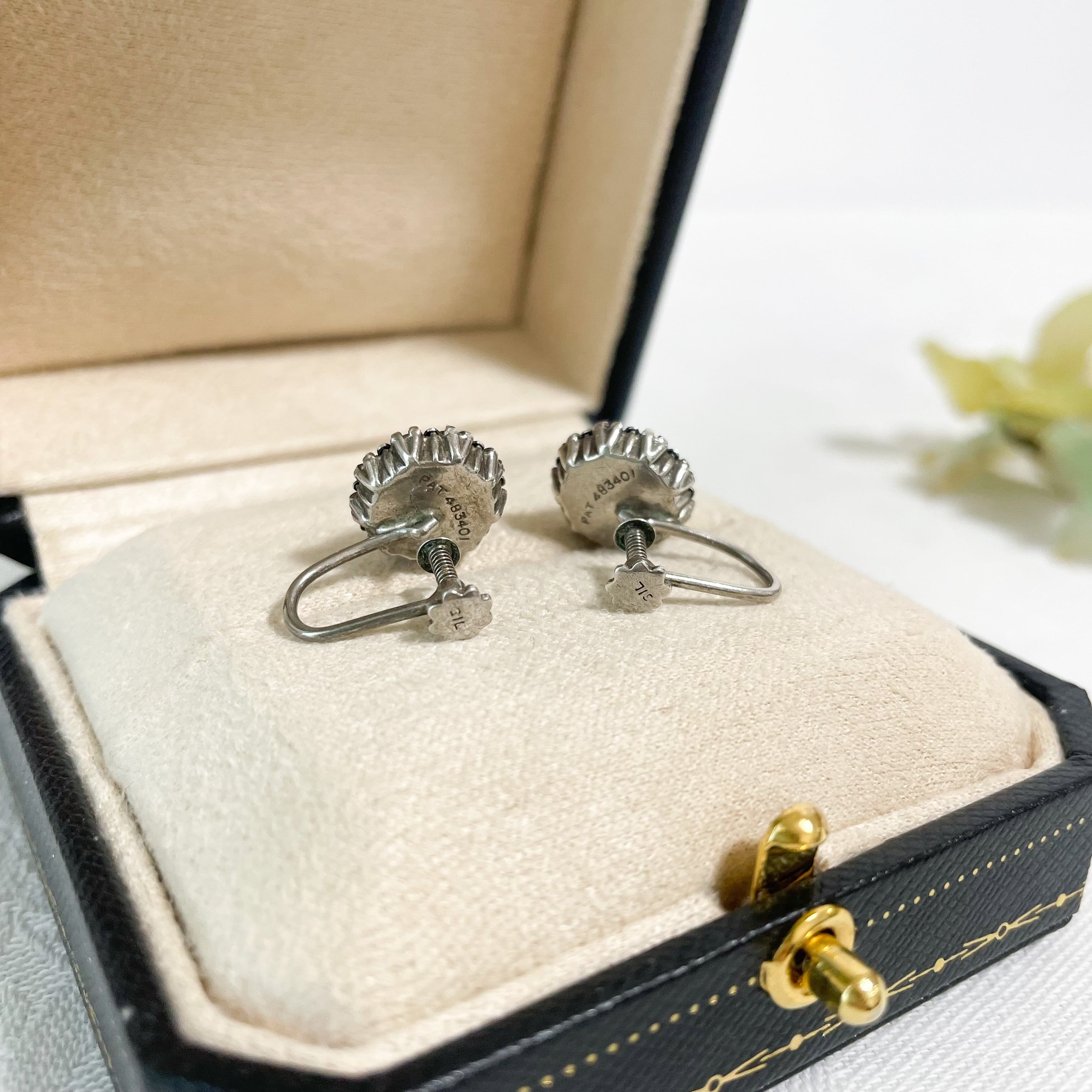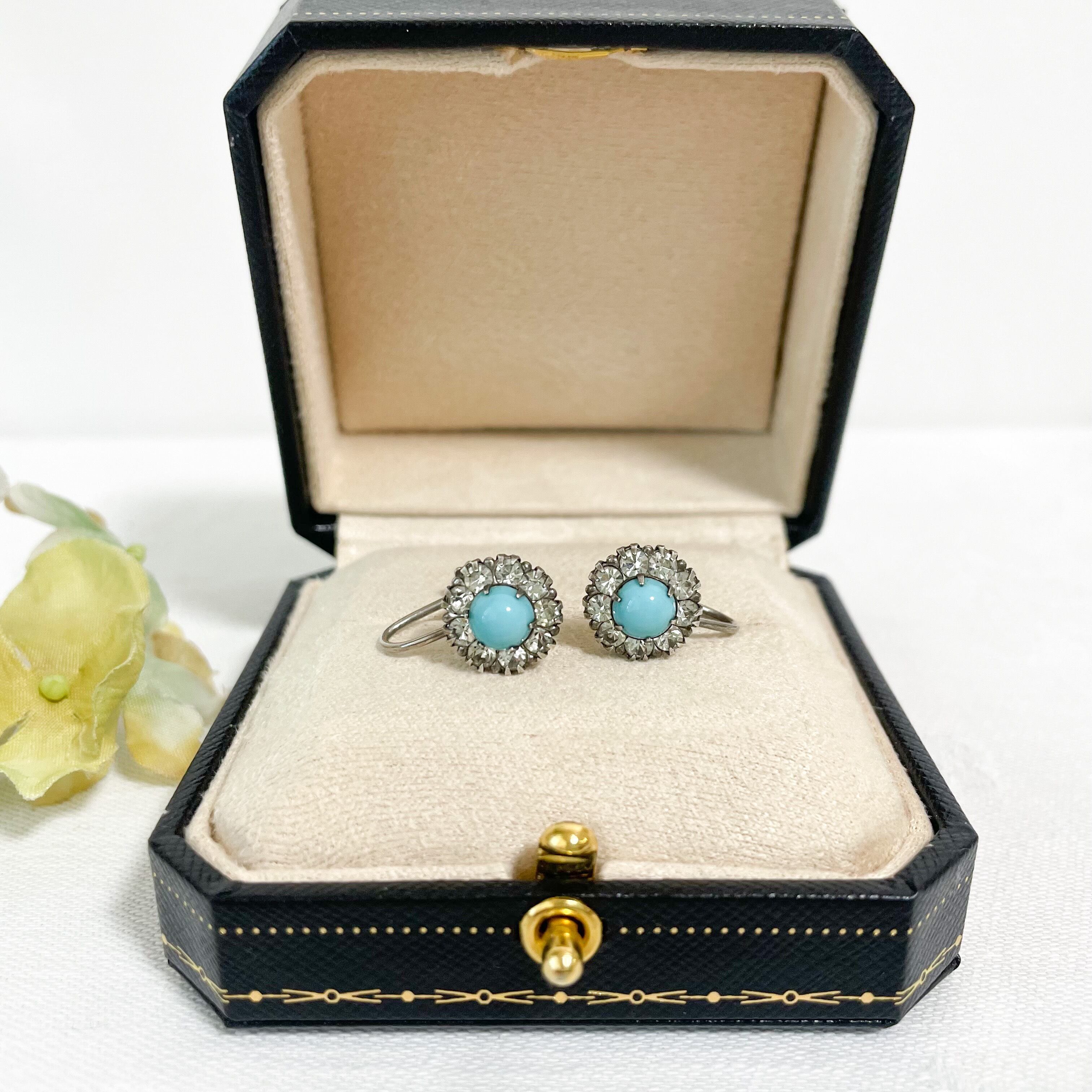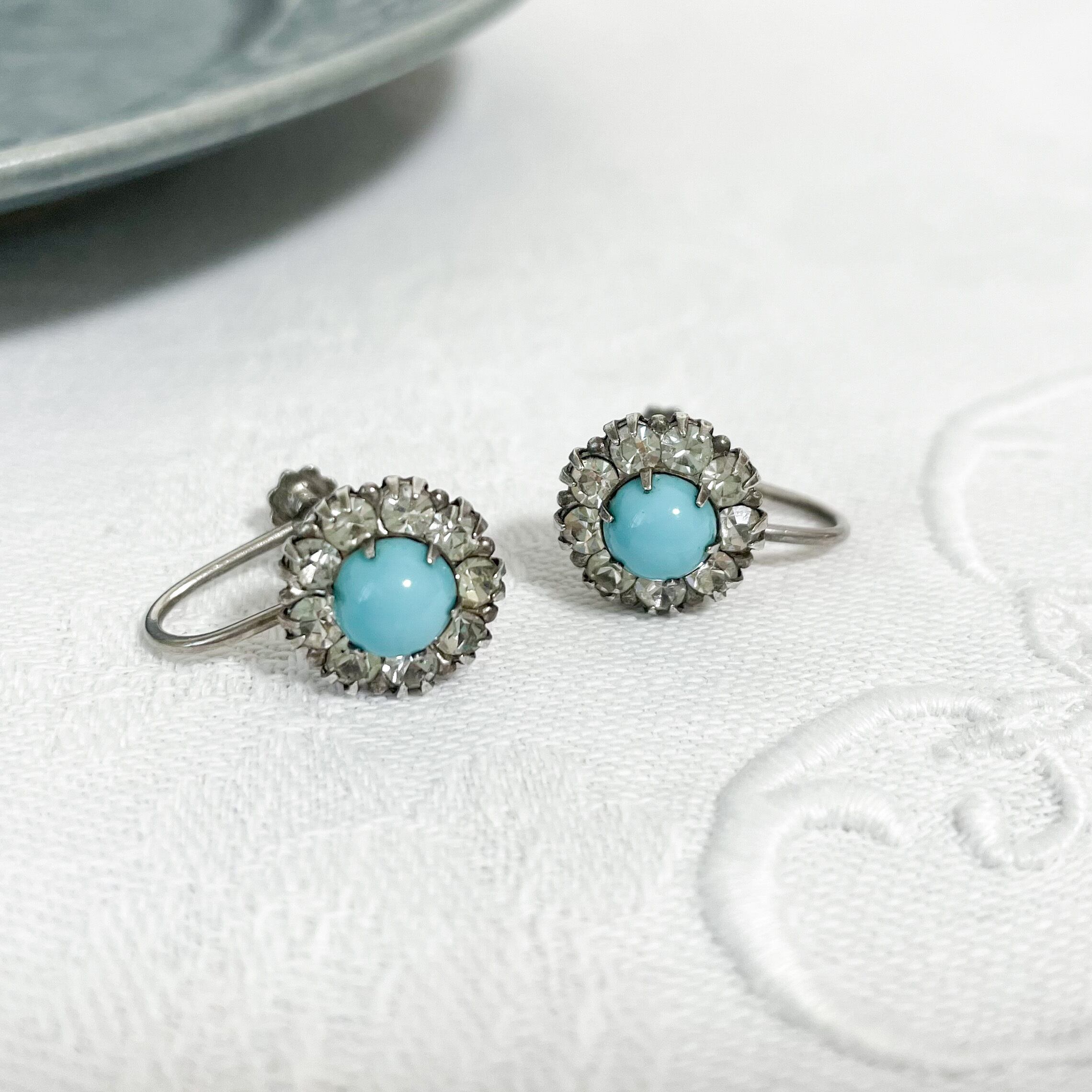 優しく爽やかな色合いのターコイズガラスのアンティークプチイヤリング。